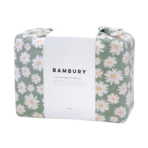 Bambury Daisy Sage Cotton Flannelette Sheet Set - Double Bed