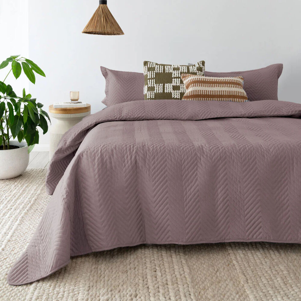 Bambury Herringbone Embossed Coverlet Set Mauve - Queen / King
