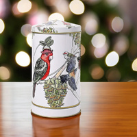 A Round Tin Embossed with Australian Wildlife artworks designed by Australian Artists