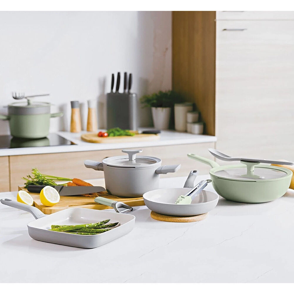 CeraGreen NONSTICK COOKWARE: BergHOFF's CeraGreen, 100% Non-Toxic, Free of PTFE, Free of PFAS, Non-stick coating made from natural based ingredients for healthier no-oil or low oil cooking. Ideal for frying, searing, and browning foods. Conducts heat fast and evenly for energy-efficient cooking.