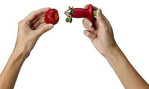 The easiest and most fun tool we've ever found for removing strawberry hulls. Push the button to open the stainless steel 'claw', insert it into the top of the strawberry, and as you release the button, the mechanism hulls the strawberry with ease. Great for tomatoes too.