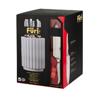 Complete your food preparation chores with ease with the Furi Pro Radial Knife Block Set. This knife block comprises seven essential knives: a santoku knife, a cook's knife, a carving knife, a bread knife, a utility knife, and an Asian utility knife. Elegantly housed in a stunning terrazzo storage block, this knife block ensures effortless access while adding a touch of sophistication to your kitchen countertop. Each knife boasts exceptional durability while its 26° Tech Edge blade ensures enduring sharpness. The reverse wedge, anti-fatigue handles securely fit into the hand, working in tandem with the optimised bolster to safeguard fingers and prevent slippage while in use.