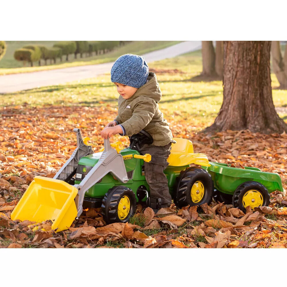 Enhance your child's outdoor adventures with the Rolly Kid John Deere Classic Tractor with Trailer and Loader. Designed for children aged approximately 2½ to 5 years, this durable and realistic ride-on features a detachable trailer, interactive sound-equipped steering wheel, and authentic John Deere styling—perfect for active outdoor play and imaginative storytelling.