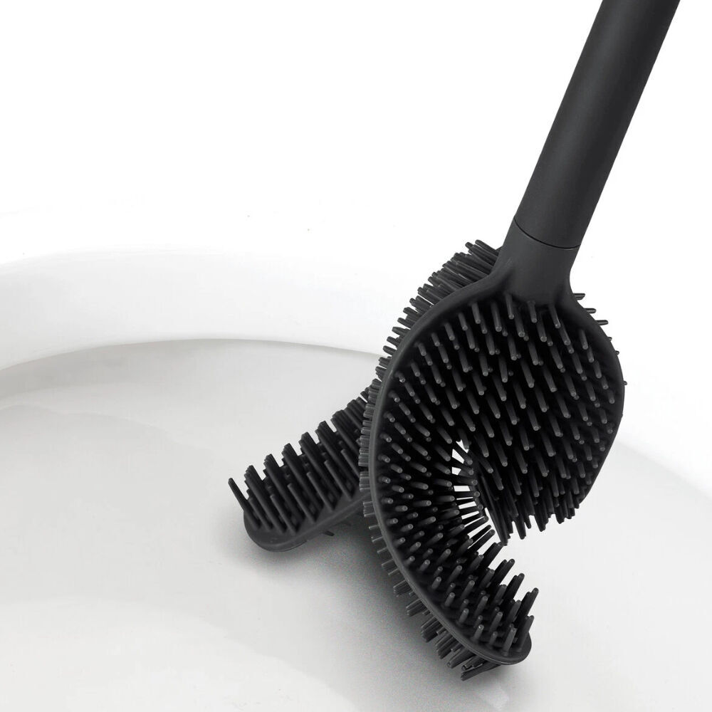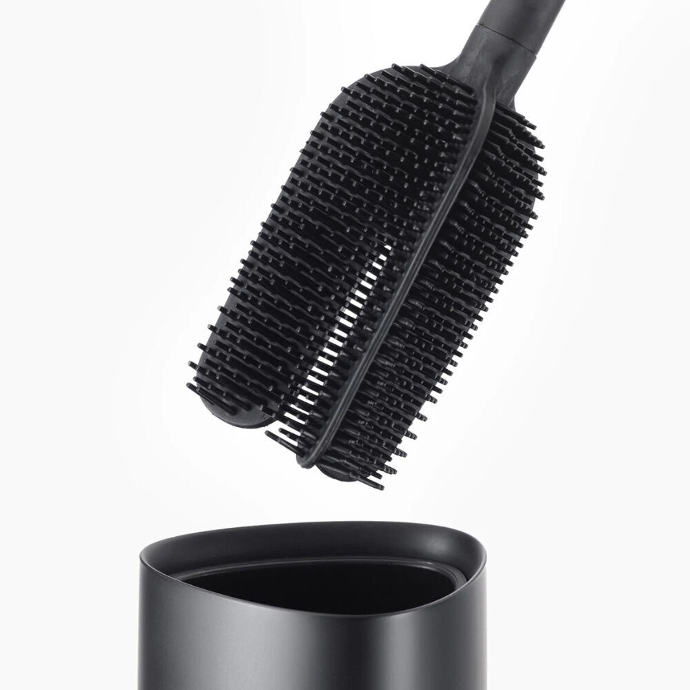 Goodbye clutter, hello hygiene! The Flex™ 360 Advanced Toilet Brush in Matte Black offers a modern, hygienic, and space-saving solution for your bathroom. Its innovative triple-action brush head cleans in three directions at once, ensuring a thorough clean with every use. The brush head is made from durable silicone, which is resistant to bacteria and easy to rinse clean. Its widely spaced bristles prevent dirt from clogging, allowing liquid to drain quickly and reducing the risk of unpleasant odors.