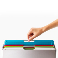 This set includes four colour-coded chopping boards that can be kept beautifully organised in their sleek slimline case.