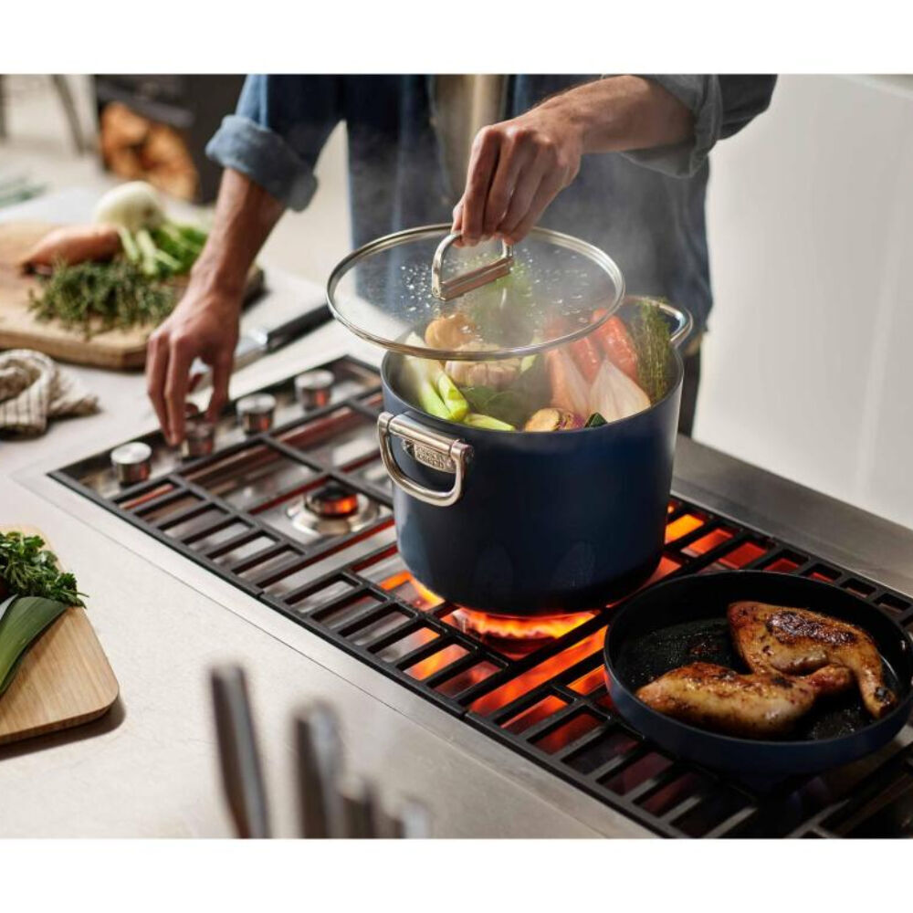 Crafted with a heavy-gauge aluminium body, it ensures even heat distribution and is oven-safe up to 232 °C (450 °F). The high-performance ceramic non-stick coating is free from PTFE, PFAS, PFOA, lead, and cadmium, allowing for healthier cooking and easy cleanup. Suitable for all hob types—including induction—this pot is perfect for making broths, soups, and slow-cooked meals.