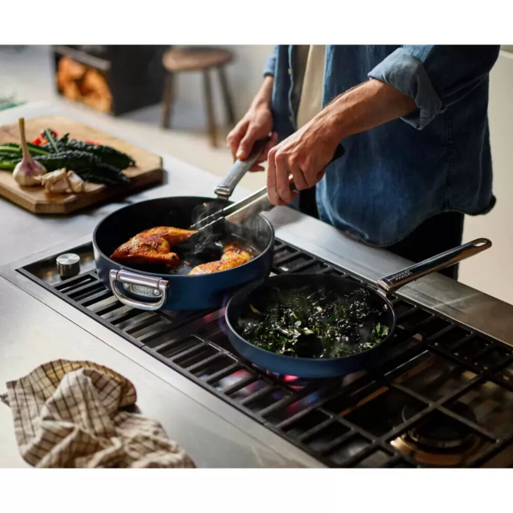 Crafted with a heavy-gauge aluminium body, it ensures even heat distribution and is oven-safe up to 232 °C (450 °F). The high-performance ceramic non-stick coating is free from PTFE, PFAS, PFOA, lead, and cadmium, allowing for healthier cooking and easy cleanup. Suitable for all hob types—including induction—this pan is perfect for frying, searing, and sautéing.