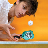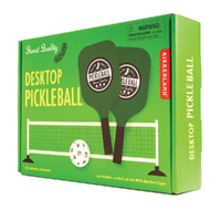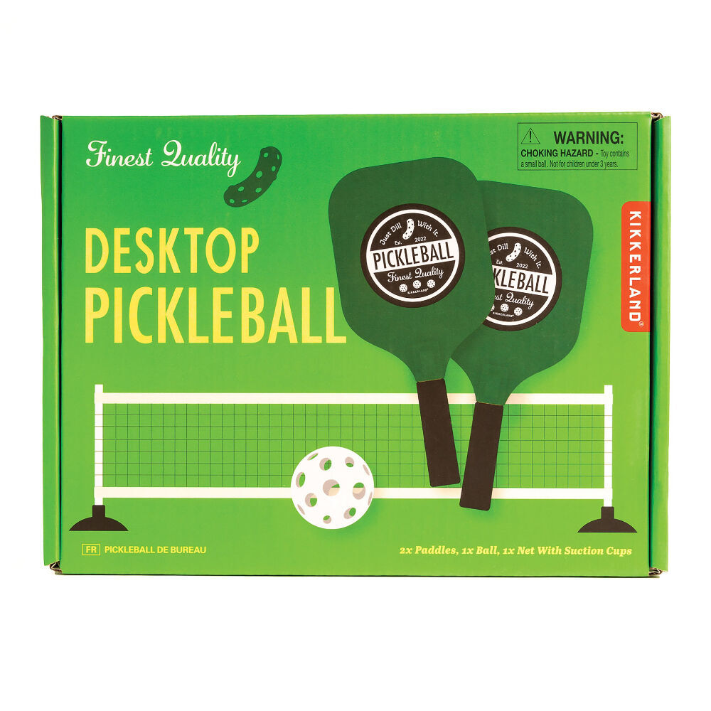 Add playful fun to your desk with the Kikkerland Desktop Pickleball set—an easy-to-set-up mini sport experience that fits right into your workspace. The set includes two lightweight wooden paddles, one perforated plastic ball, and a net that adheres securely to your desk with suction cups for instant game setup. Designed to bring movement and a touch of competition to your day, it's perfect for quick breaks, office fun, or even as a quirky novelty gift. With compact paddles measuring approximately 9.1 × 2.4 × 20.5 cm, a 61 × 1 cm net, and a 4 cm diameter ball, this kit delivers big fun in a small package.