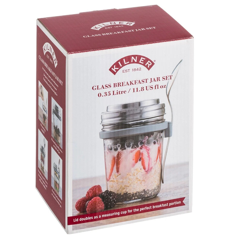 Enjoy a healthy breakfast on the go with the Kilner Breakfast Jar Set 350ml – a convenient and stylish way to store, transport, and enjoy oats, yoghurt, fruit, and more.