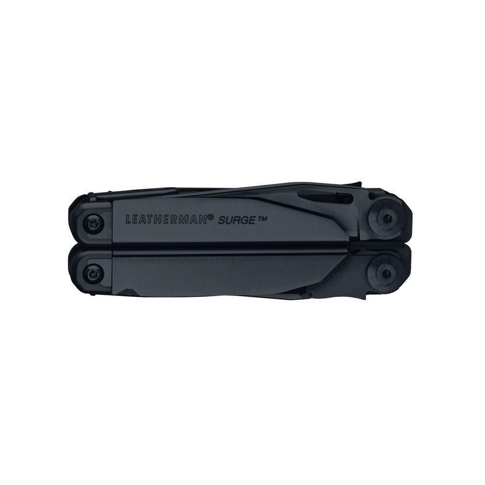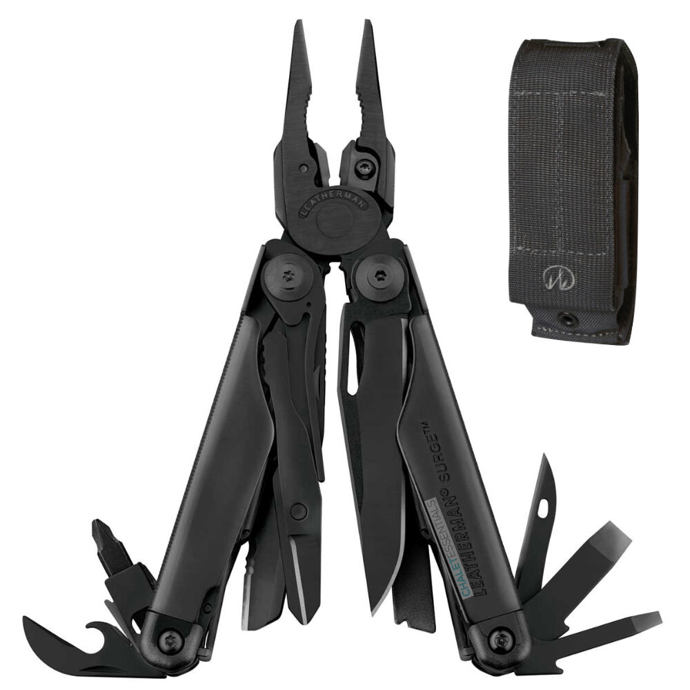 The Black Oxide Leatherman Surge comes with a rugged nylon black MOLLE sheath that is compatible with military MOLLE vests.