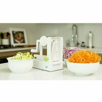 Create delicious fresh zucchini noodles, quick and easy curly fries, shredded carrots and cabbage for Coleslaw, decorative garnishes and much more.