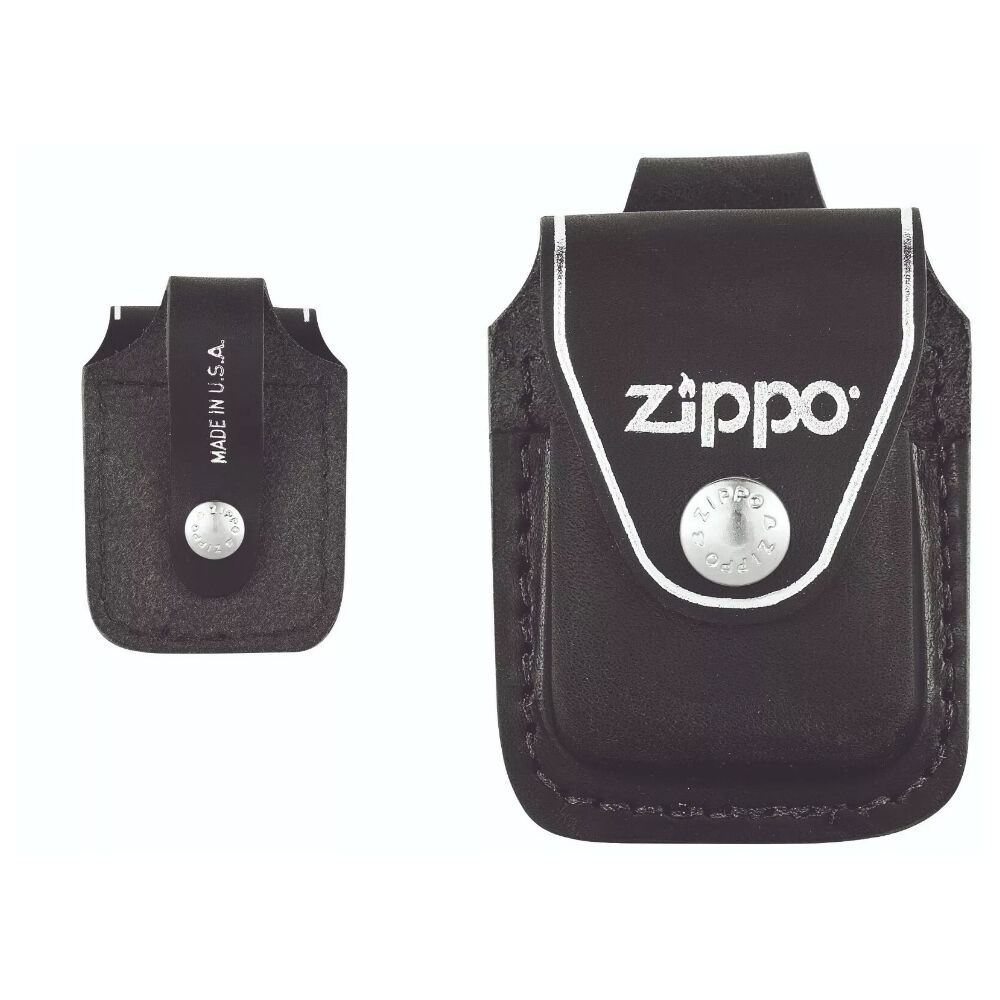Zippo’s genuine leather black lighter loop pouch has a stylish design, yet is easily accessible. Features of this lighter pouch include a wide leather loop that fits belts up to 2” wide and holds any Zippo windproof lighter securely. Comes packaged in a black Zippo box.