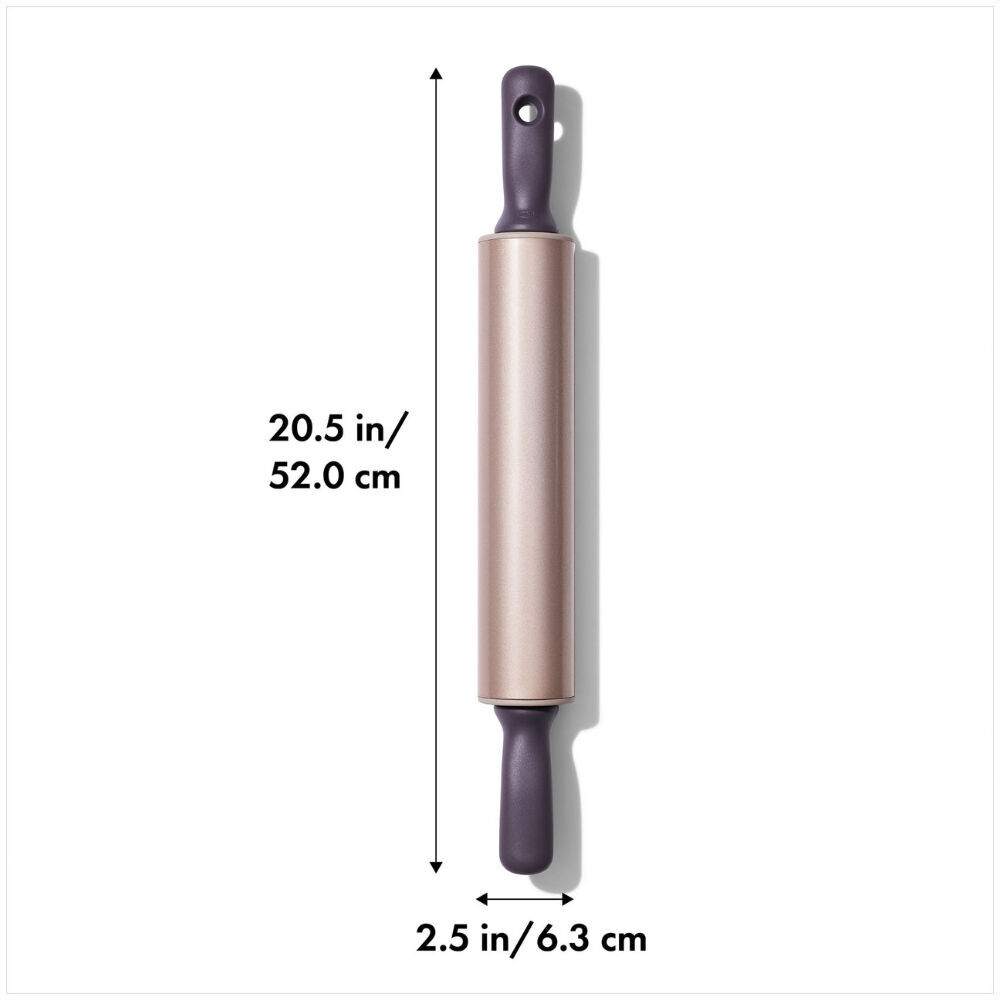 Create smooth, even dough effortlessly with the OXO Good Grips Non-Stick Rolling Pin. Designed for comfort and performance, this rolling pin features a lightweight construction and a low-friction surface that keeps dough from sticking. Its ergonomic handles offer control, while the integrated thickness rings ensure consistent rolling for perfect crusts, cookies or pastry.
