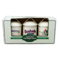 - Set of 3 canisters featuring Arnotts, Bushells and Rosella designs