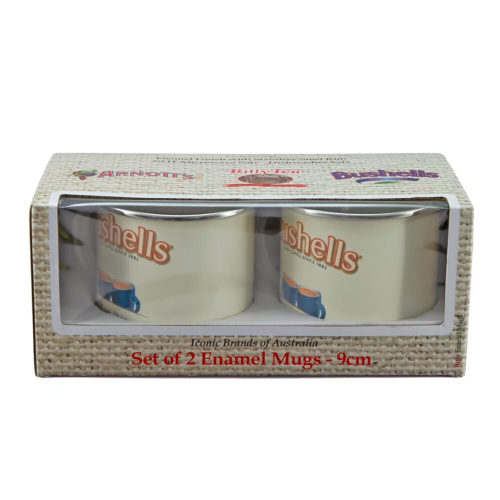 A nostalgic essential for tea lovers and enamelware fans alike, the Bushells Tea Enamel Mug Set of 2 combines classic Aussie branding with practical durability. Showcasing the iconic Bushells tea logo, these mugs add personality and charm to your morning brew or camp‑side cuppa. Crafted for everyday use, they’re perfect for home kitchens, outdoor adventures, or gifting.
