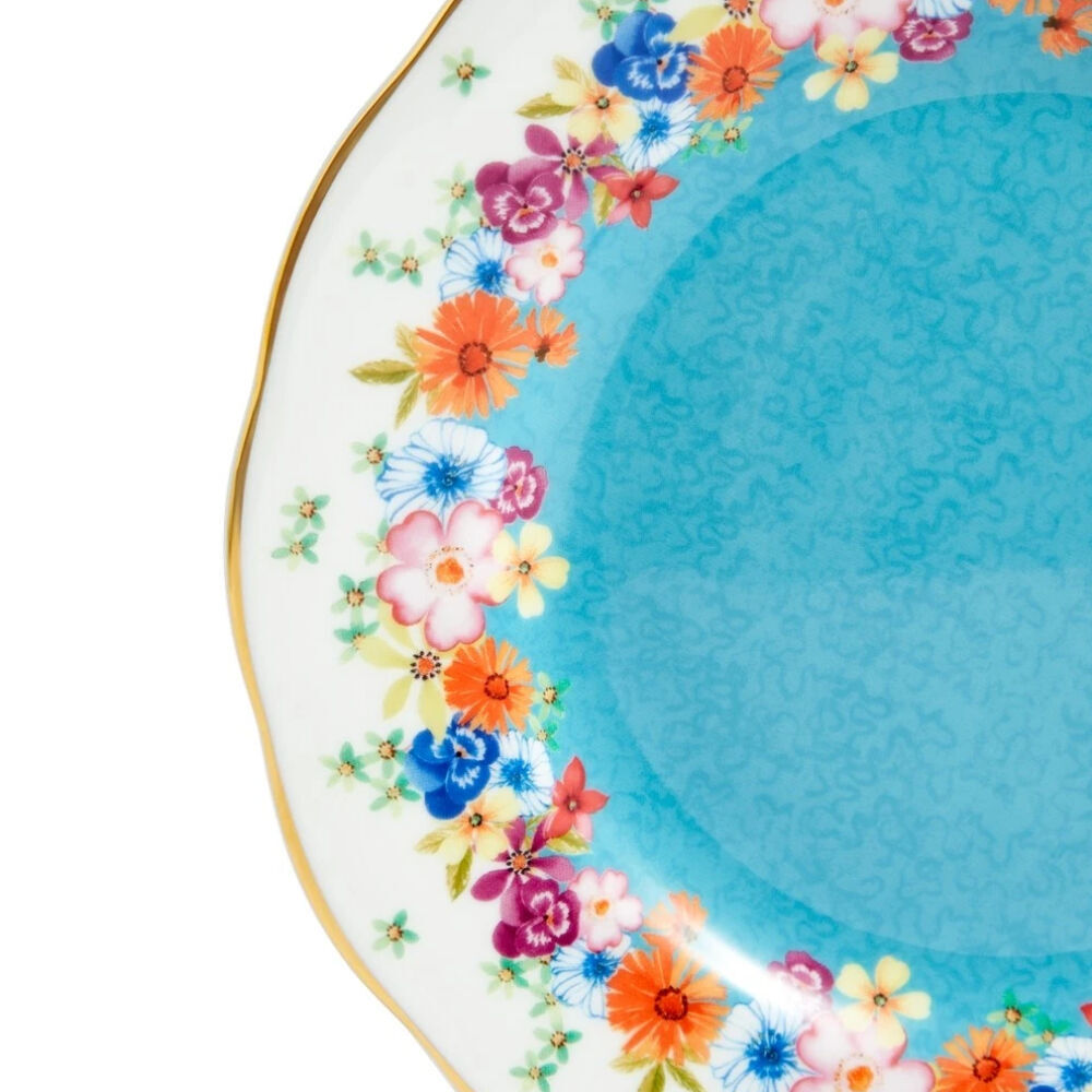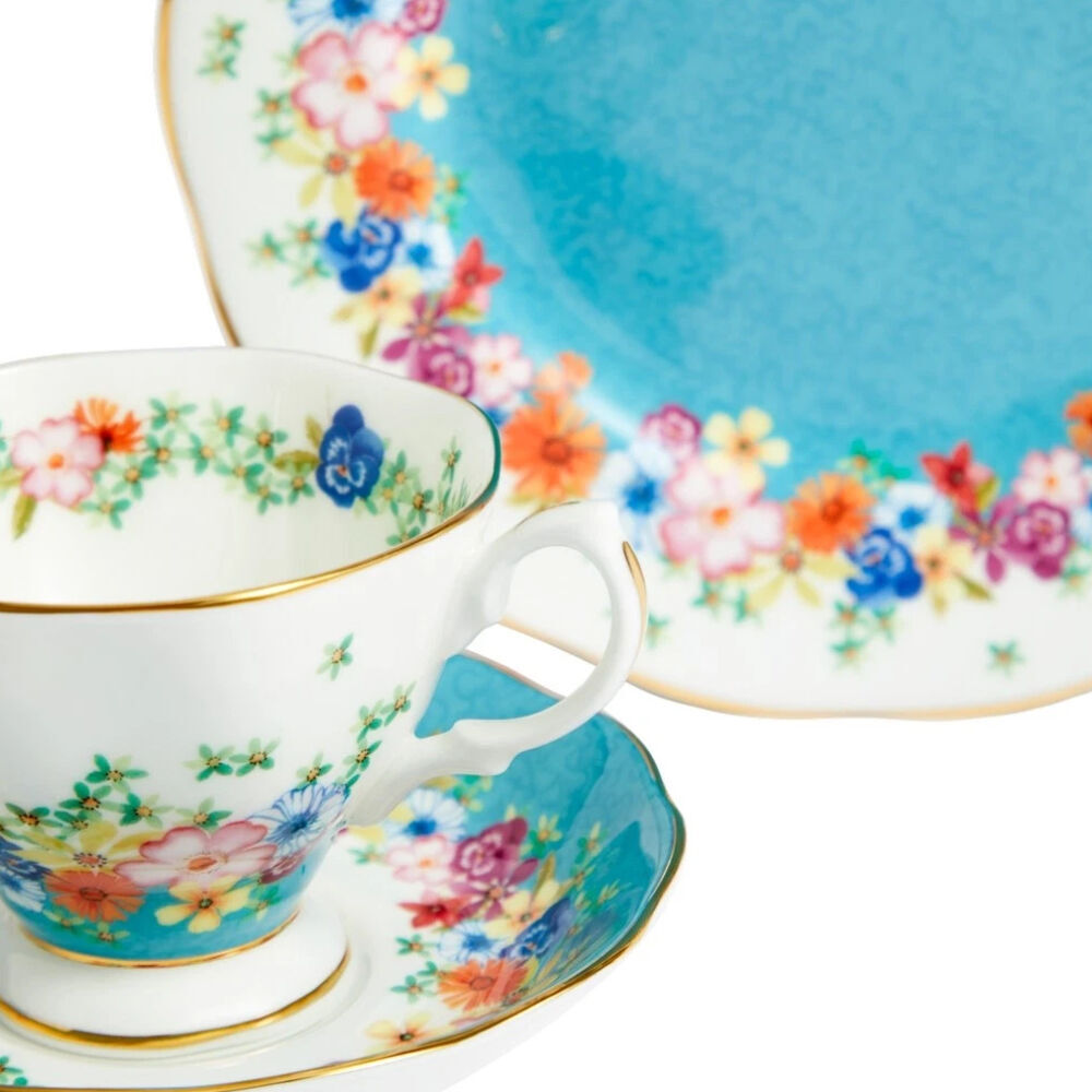 Celebrate a century of exquisite craftsmanship with the Royal Albert '100 Years' collection. This elegant 3-piece set—designed in honour of the 1940 Florence pattern—pairs vibrant floral motifs with turquoise accents, all crafted in fine bone china. Accented with a delicate gold trim and presented in a commemorative gift box, it offers nostalgic charm with practical elegance.