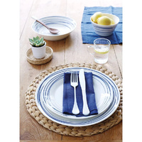 The Royal Doulton Pacific Plate 28cm is crafted from chip-resistant porcelain and decorated in crisp blue and white coastal-inspired patterns. Its textured design draws on seaside elements such as shells, rock pools, and driftwood, bringing casual elegance to everyday dining or relaxed entertaining.