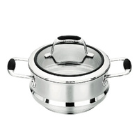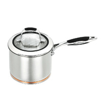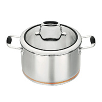 The base features an impact-bonded copper wedge enveloped by two layers of aluminium and stainless steel, ensuring rapid, even heat distribution and excellent temperature control. The sturdy lids have a stainless steel rim and tempered glass insert, allowing you to monitor cooking without lifting the lid. Cast stainless steel handles with soft-touch silicone inserts stay cool, while the interior mirror-polished 18/10 stainless steel finish includes capacity markings for convenience. Suitable for all cooktops—including induction—and oven safe up to 220 °C.