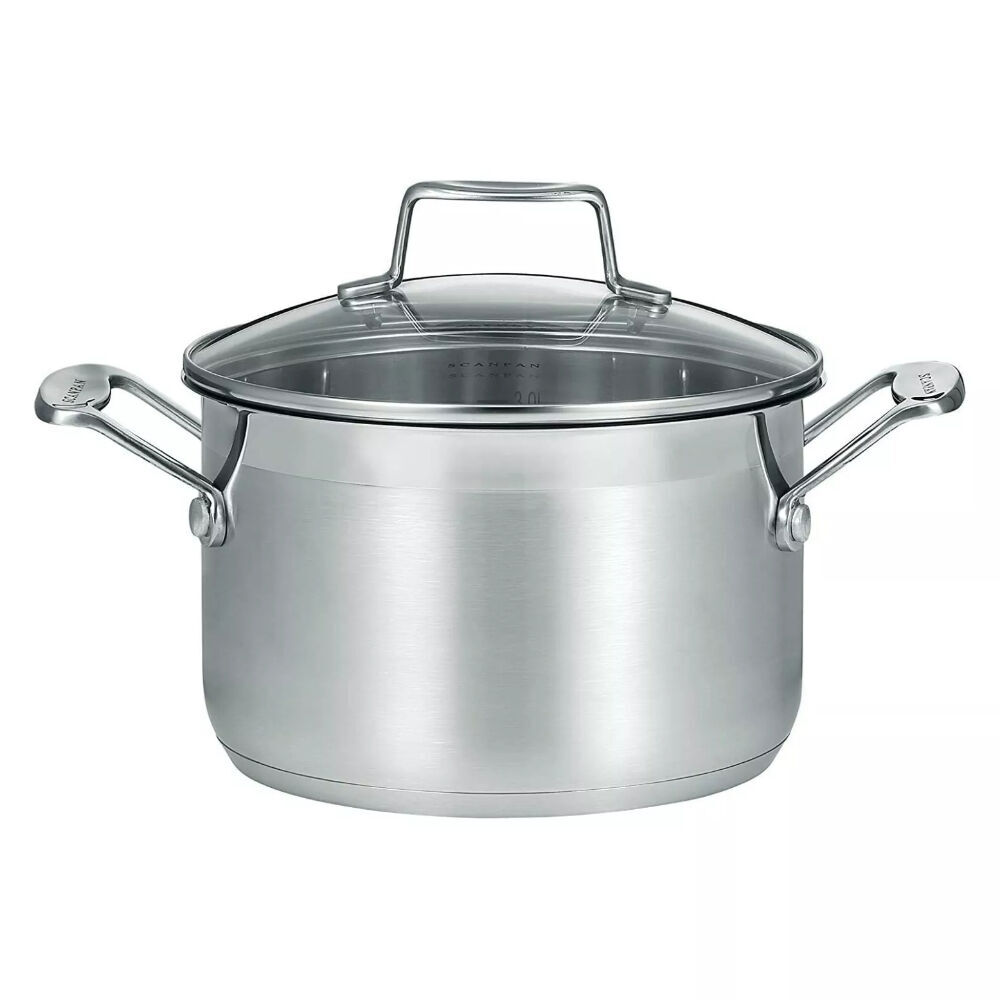 With many years of experience, Scanpan's Danish designers have developed the popular stainless steel Impact range with all the features you would expect from Scanpan. This 18cm/2.8L Dutch Oven is ideal for those smaller meals and has a stylish two tone matt/polished appearance with a glass lid to enable easy viewing of your cooking in progress. The optimal 6.4mm thick bonded sandwich base ensures optimal heat distribution. Compatible with all energy sources including induction, this range is as wide as it is popular. The rim design allows for drip-free pouring and the handles are secured with heavy duty rivets. The contemporary satin finish suits all kitchen decor and with the internal capacity markings on a polished internal finish making measurement easy and accurate.