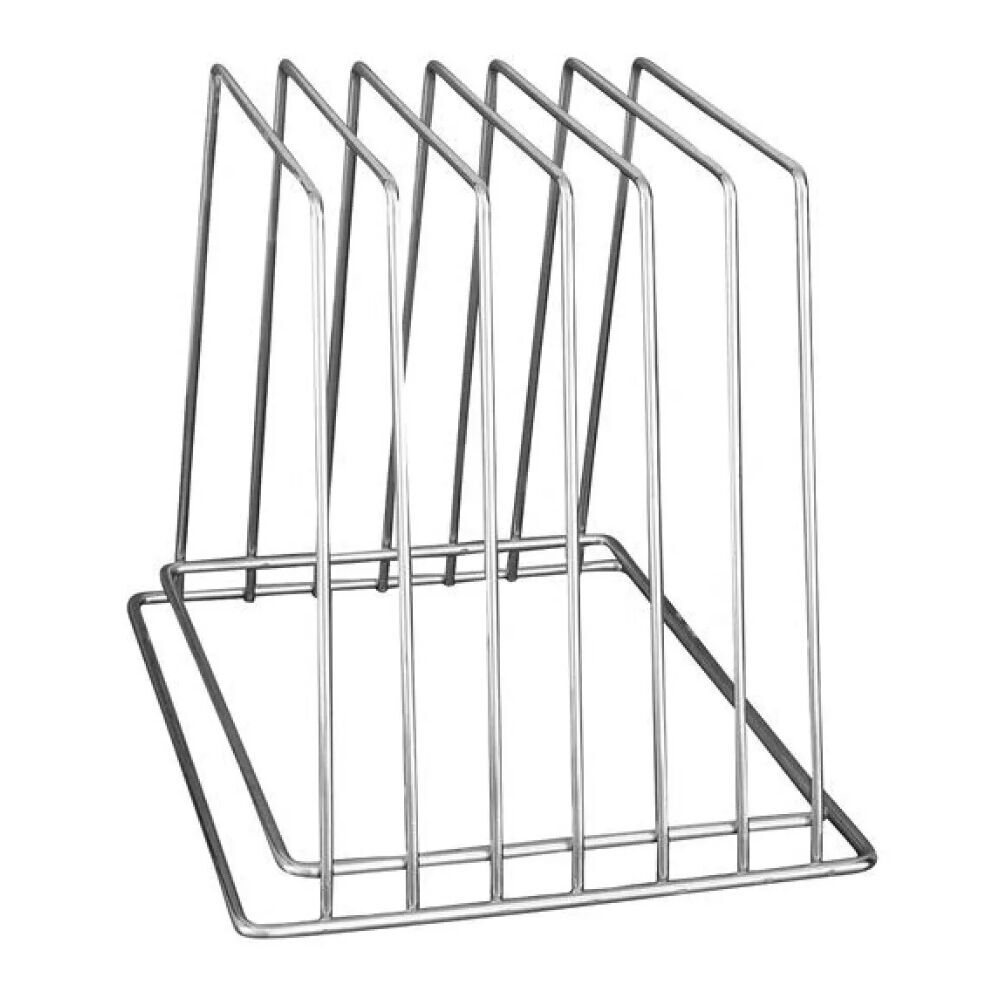 This sturdy rack features six slots, each approximately 2.5cm wide, providing ample space to store your cutting boards upright and within easy reach. Crafted from durable chrome-plated steel, it offers a sleek finish that complements any kitchen décor. Its reinforced base ensures stability, making it a reliable choice for both commercial and home kitchens.