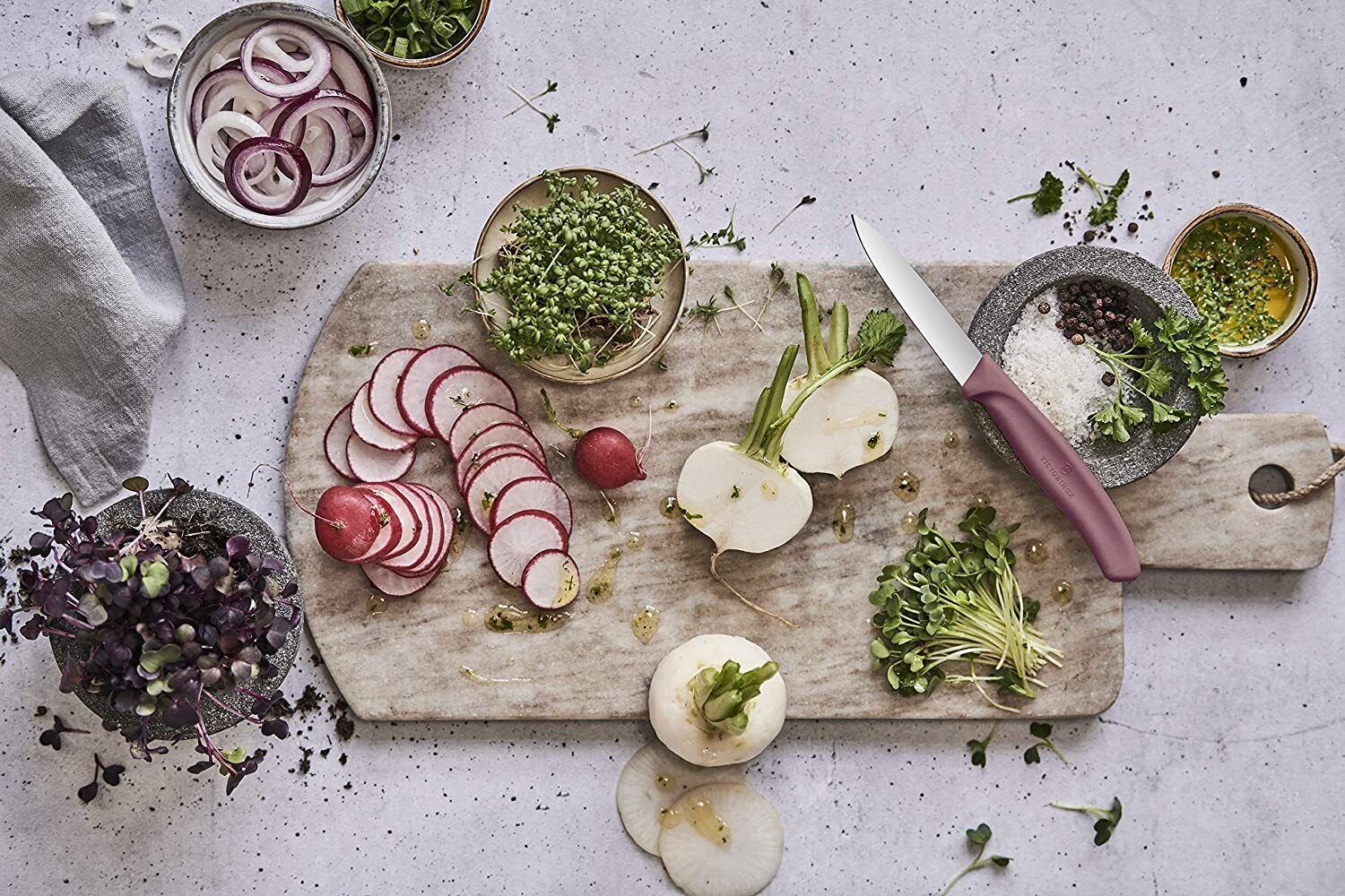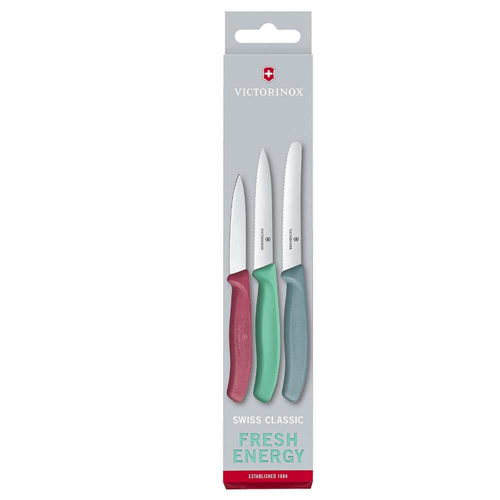The Victorinox Swiss Classic Fresh Energy Paring Knife Set is the optimal combination of blades for food prep combined with special edition handle colors. Featuring stainless, wear-resistant stainless steel blades and ergonomic polypropylene handles. These knives are lightweight and dishwasher safe.