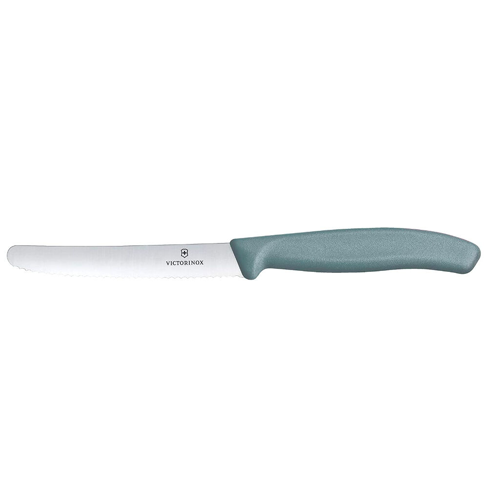 - Rounded Tip and Serrated Edge Slate Colored Tomato Knife.