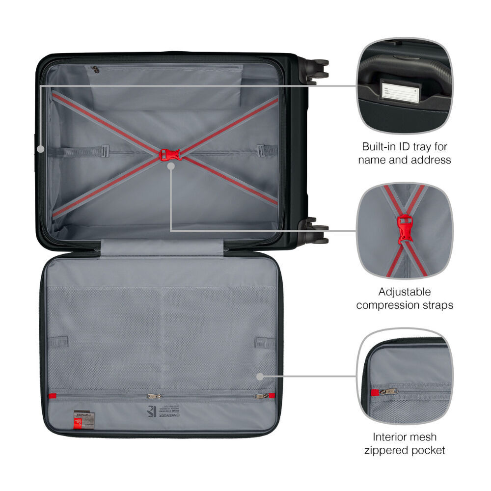 - Built-in ID tray for name and address if the luggage is lost